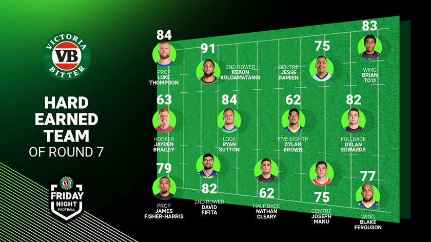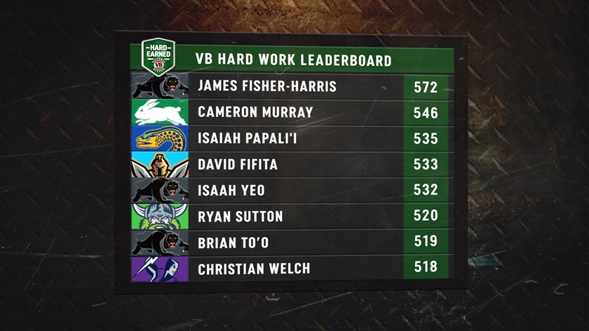 Two Rabbitohs forwards were the hardest-working players of round seven according to the VB Hard Earned Index, while Panthers winger Brian To'o is proving to be a forward in a winger's body.