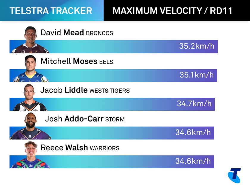 David Mead ran away with the game against the Roosters last Saturday and the Broncos flyer also proved too quick to catch on the weekly Telstra Tracker leaderboard.
