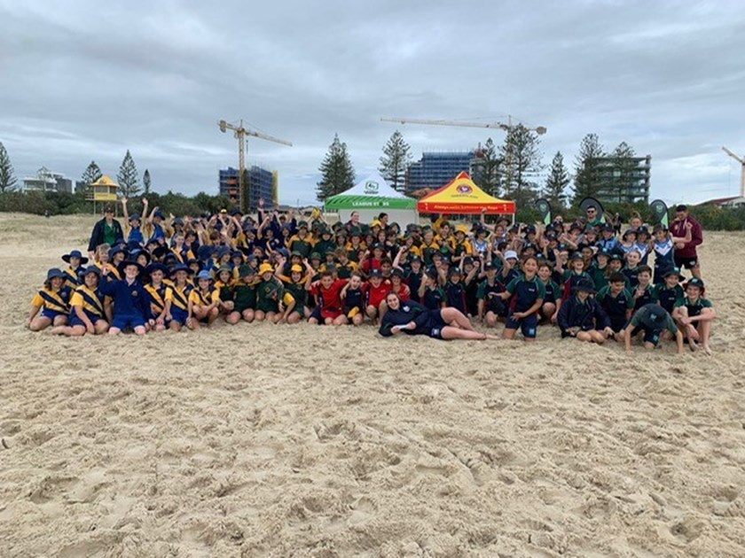 Almost 200 primary school students hit the sand last Thursday for the NRL Beach Touch Football Gala Day.