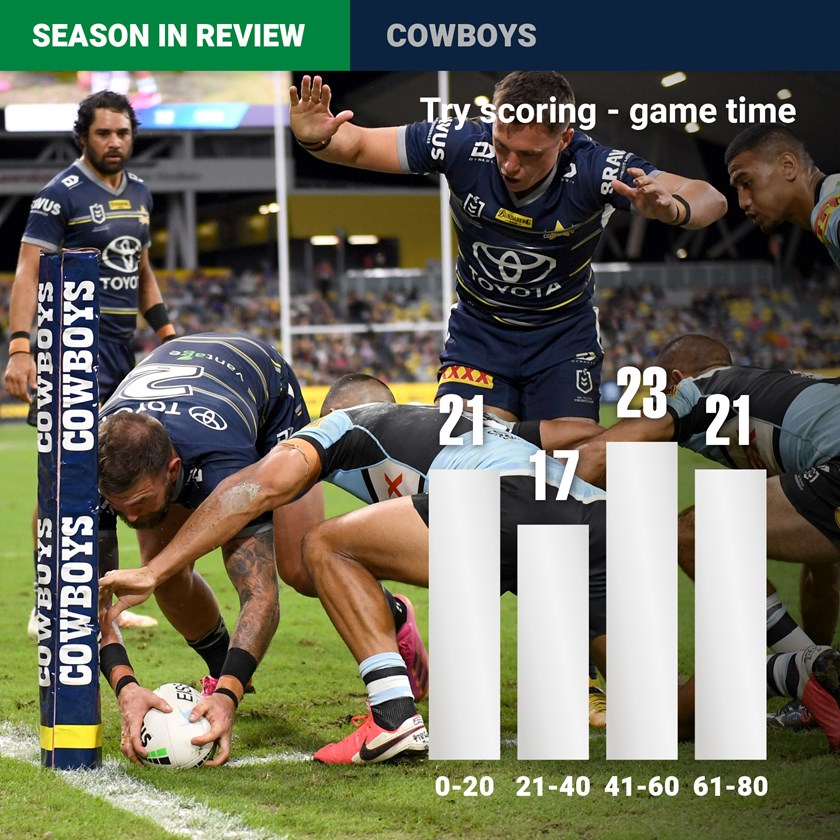 The Cowboys ranked eighth for tries scored in the opening 20 minutes of games.