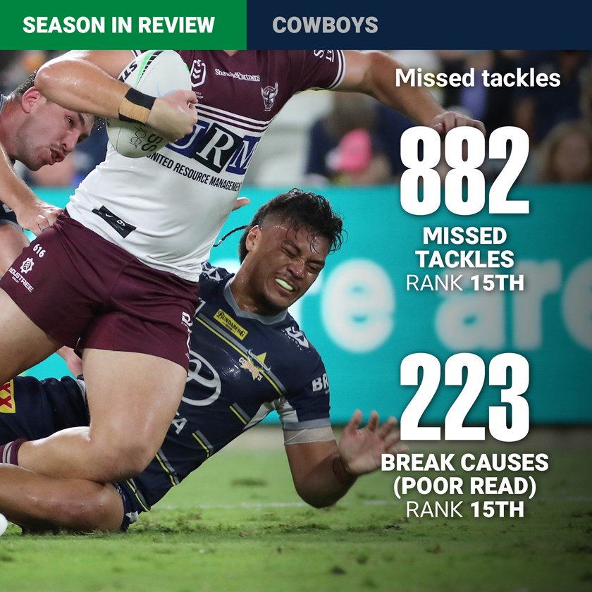 North Queensland struggled throughout the year to defend their line to rank 15th behind Parramatta for most break causes for poor reads.