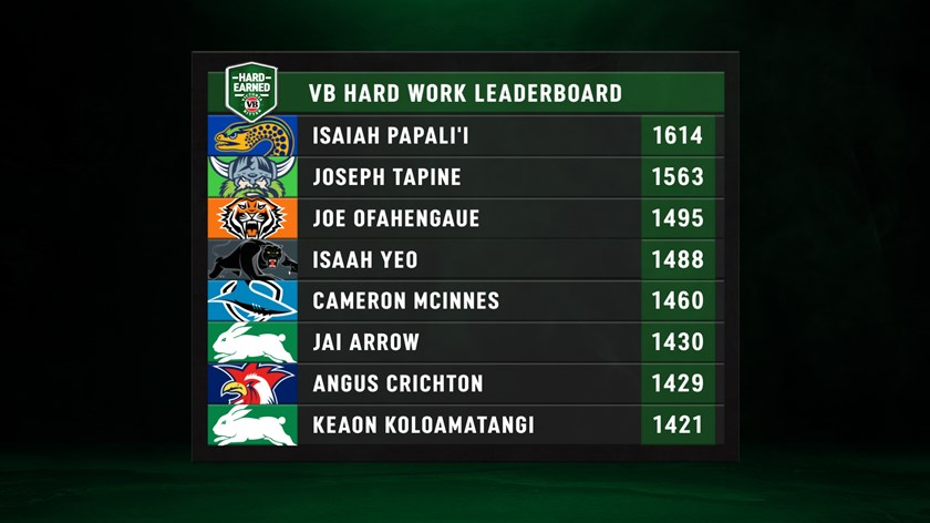 All up the back-rower made 203 metres, adding six decoy runs and two support runs to his tally for an Index score of 103, well clear of David Klemmer and Isaah Yeo, who finished tied for second on 89 points.