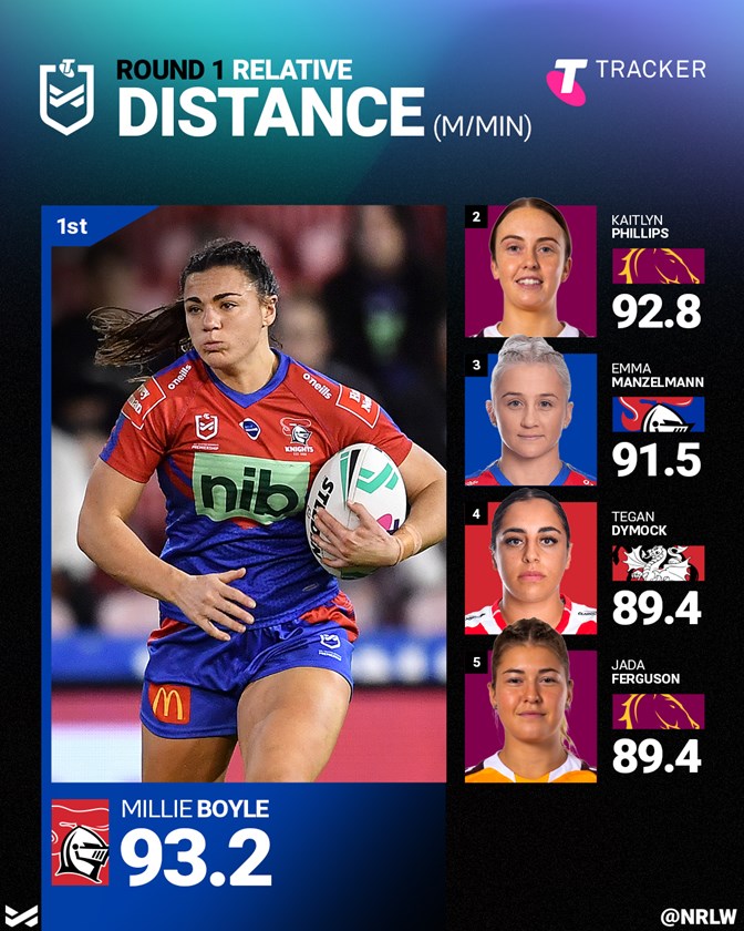 In the NRLW Millie Boyle had a busy club debut for the Knights in which she covered more metres per minute than any other NRLW player, helping Newcastle to their first ever victory in the competition.