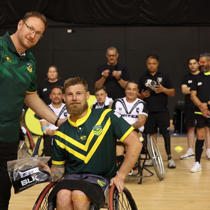 As has been the case throughout the tournament, Bourson's speed was causing the Wheelaroos all sorts of issues — steaming through to collect two long-range tries off kicks to take his tournament tally to 15 tries and counting.