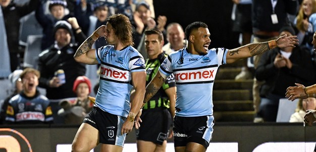 Blockbusting winger Sione Katoa's fifth try of the season and 51st of his career showcased his power and pace as well as the finesse of fullback Will Kennedy. With Nicho Hynes orchestrating the attack brilliantly, the Sharks' right edge clicked into gear and the halfback found Kennedy who delivered a perfect tap-on to Katoa, who powered through Tom Dearden and Val Holmes to score.