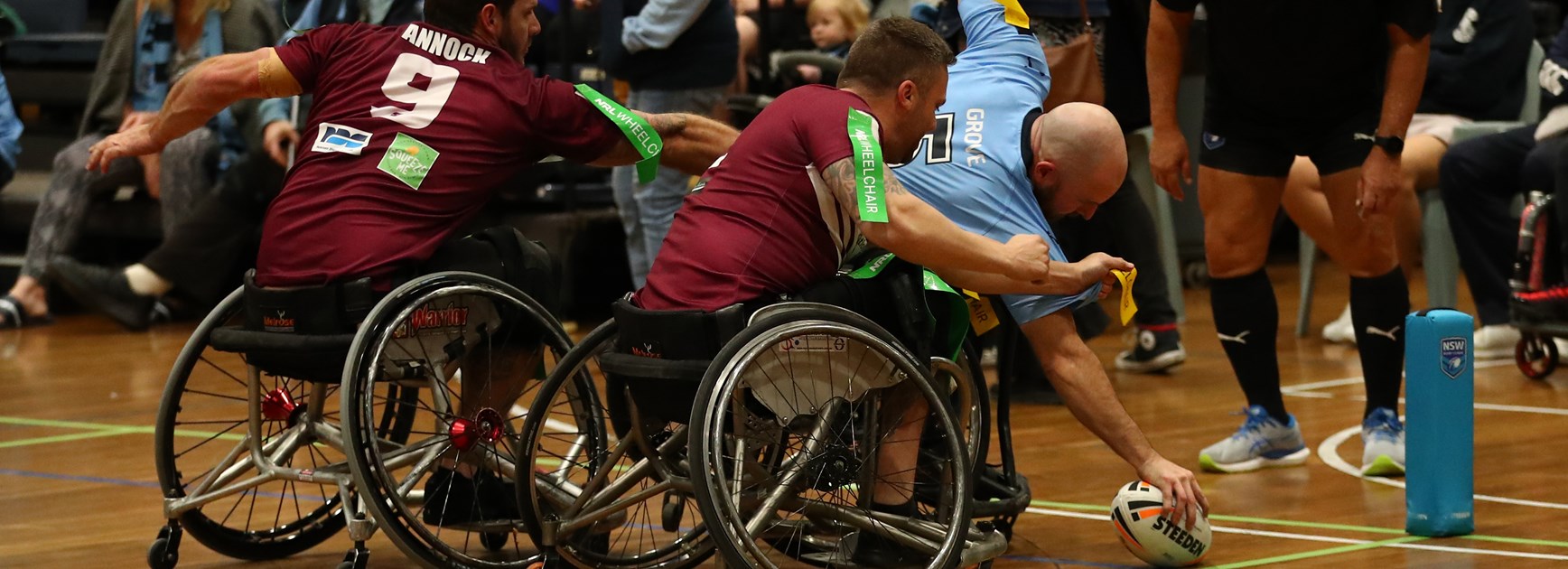 A hat-trick to Adam Tannock underpinned Queensland’s 42-26 win over the NSW Blues to claim the Wheelchair Rugby League State Challenge shield for a third year in a row.