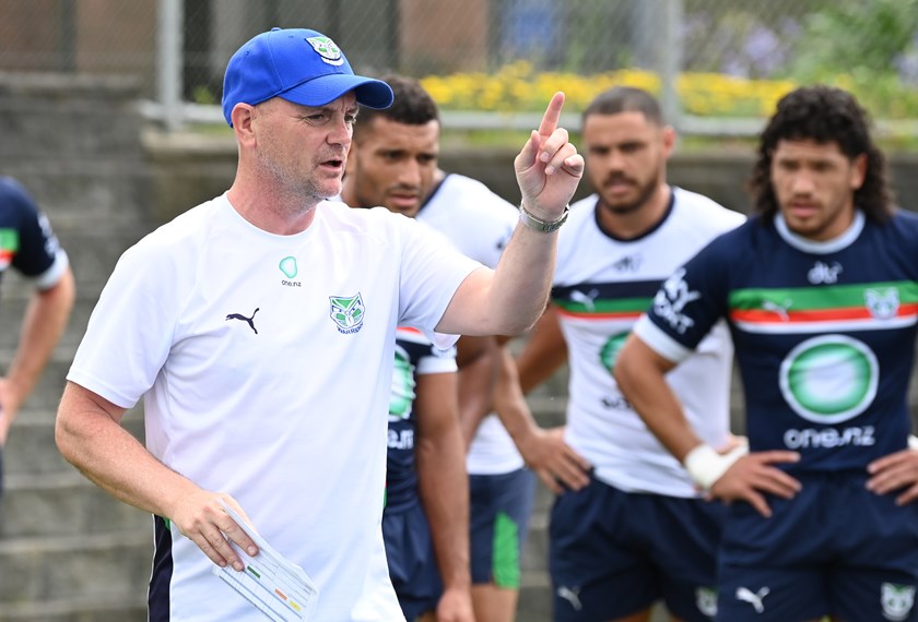 Richard Agar works with the Warriors edges, including Dallin Watene-Zelezniak ©Photosport NZ