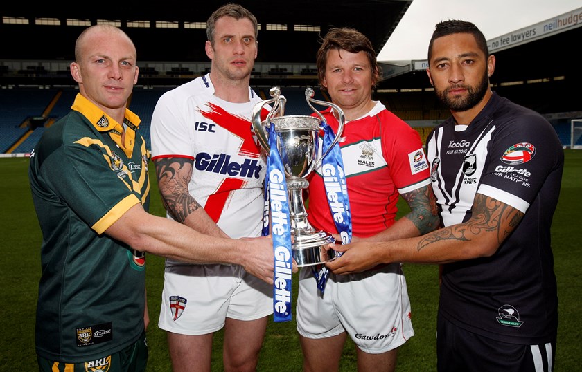 Lee Briers with rival 2011 4 Nations captains Darren Lockyer, Jamie Peacock and Benji Marshall ©SWPix