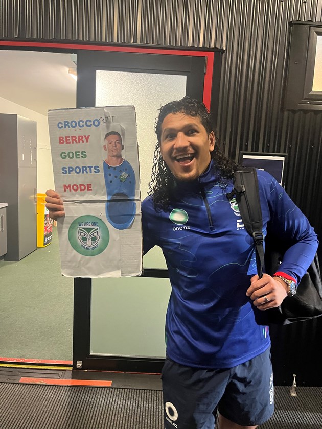 “I’m loving playing outside Rocco, I’ve got the best seat in the house to see what he really does,” the winger said while clutching a fan-made poster of Berry snaffled from the Christchurch crowd to take home to his kids.