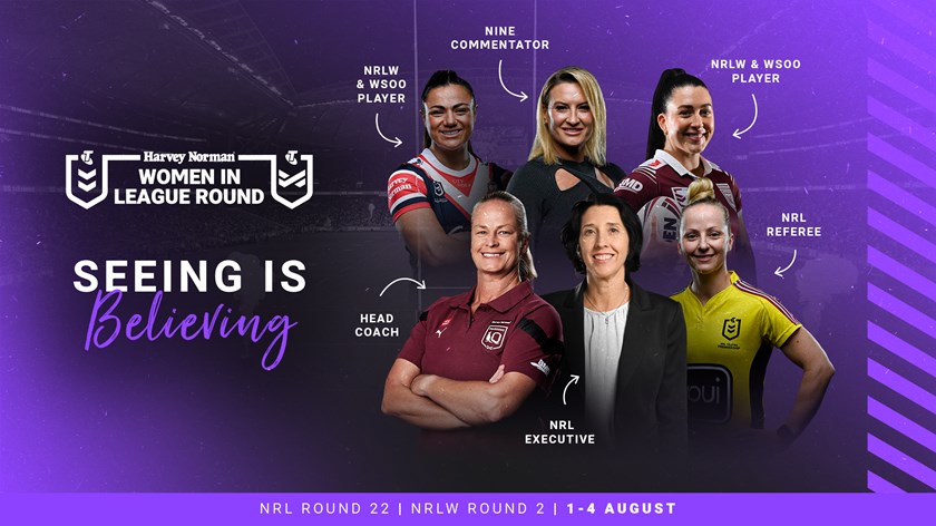 Harvey Norman Women In League Round will be celebrated across the round of NRL and NRLW action with Clubs paying tribute to key women in their local communities.