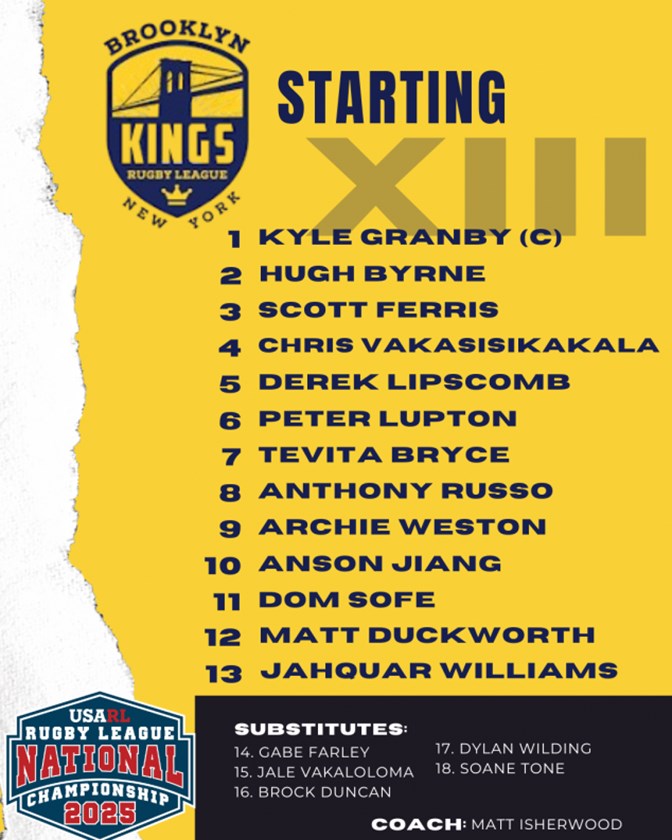 On the other side, the Brooklyn Kings, representing the North East Division under Rugby League United, are aiming for their second national title.