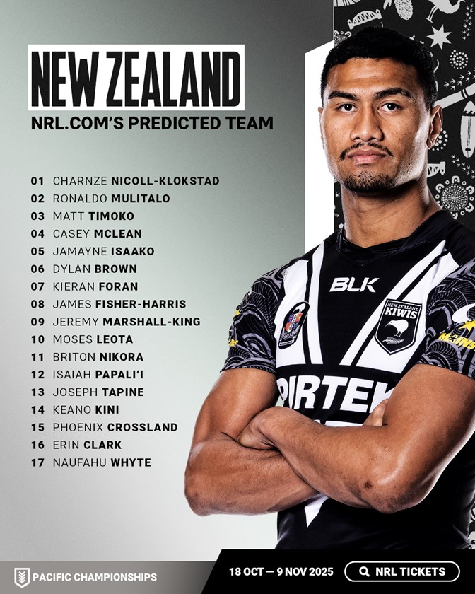 The Kiwis also boast strike power on the edge, with Cronulla's Briton Nikora, Penrith pair Isaiah Papali'i and Scott Sorensen or Brisbane's Jordan Riki in the secondrow.