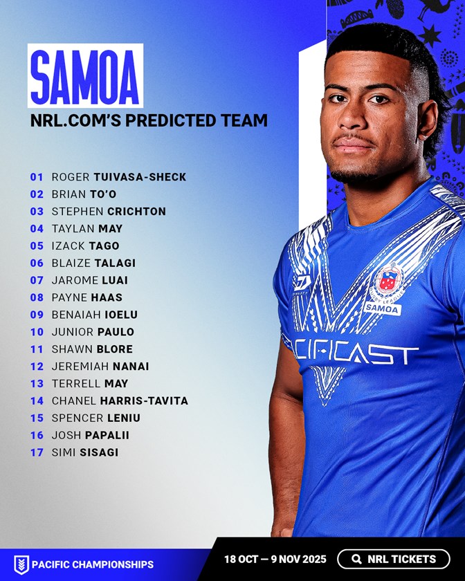 For Samoan coach Ben Gardiner, the depth of talent now at his disposal also means some dramatic selection headaches and only Jarome Luai and Roger Tuivasa-Sheck could be sure of retaining their positions from last season.