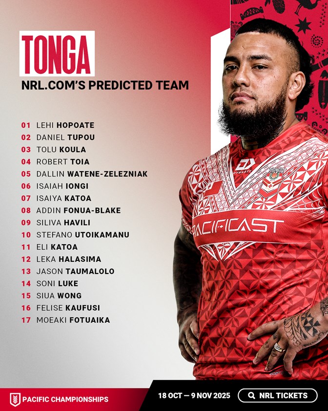 In the forwards, Stefano Utoikamanu is set to make his Tongan debut alongside Addin Fonua-Blake in a star-studded pack featuring Storm team-mate Eli Katoa - arguably the form secondrower of the NRL - and Warriors sensation Leka Halasima.