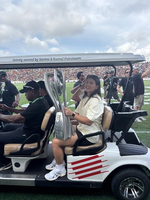 The Broncos have embarked on a trophy tour as they celebrate their NRL and NRLW premiership success. The first stop is Papua New Guinea, with the fans at Santos National Football Stadium clamouring for a look at the club's biggest stars.