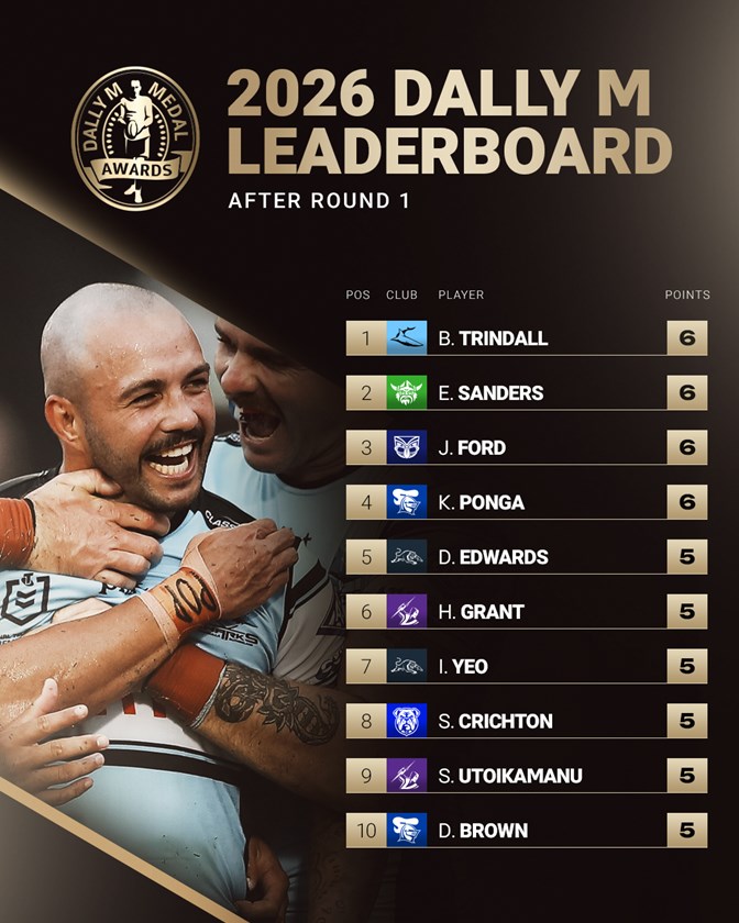 • Dally M votes: Harry Grant 5, Stefano Utoikamanu 5, Joe Chan 1, Sua Faalogo 1.