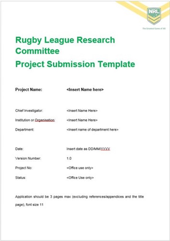NOTE: this is a read-only document designed to provide a guide for how to complete the template. If you wish to apply for funding for a research project, and/or to seek endorsement, please send an email to the Program Manager of the Rugby League Research Committee, at research@nrl.com.au, to request a version that you can complete. The completed EOI Submission template should be sent by email to the Program Manager.