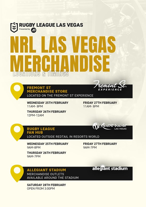 Rugby League Las Vegas presented by JD Sports will kick off the 2026 NRL Telstra Premiership season on American soil!